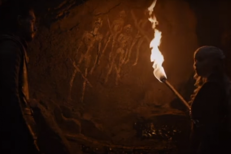 Dans l'épisode 4 de la saison 7, Jon Snow entraîne Daenerys dans les profondeurs de Dragonstone. Il lui montre les mines de Verredragon, seule roche capable de détruire les Marcheurs Blancs avec l'acier valyrien. La grotte recèle un autre secret : des peintures rupestres des Enfants de la Forêt. Elles montrent qu'une alliance a été formée entre ce peuple de la Forêt et les Premiers Hommes pour détruire les Marcheurs Blancs.