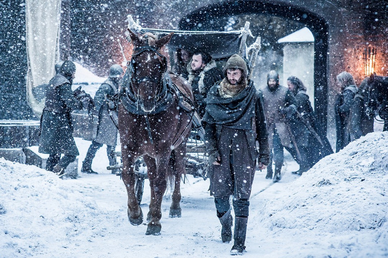 Outré par cet énième mensonge et convaincu que les morts sont le véritable ennemi, Jaime décide de partir. Cersei le menace de mort mais ne va pas jusqu'à donner l'ordre à la Montagne de tuer son frère et amant. Jaime quitte alors la capitale alors que les premiers flocons de neige virevoltent au dessus de Port-Réal... L'Hiver est là et il avance vite.