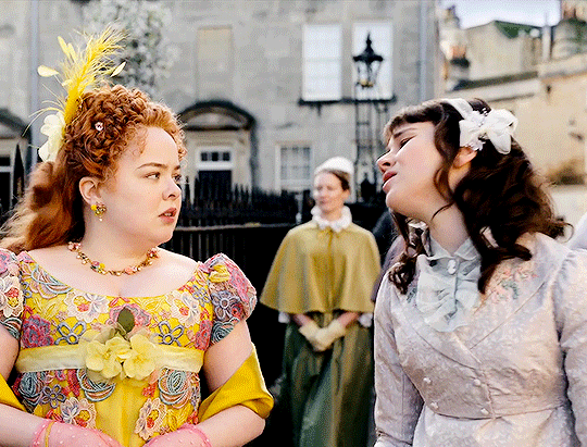 Reproduire l'intrigue d'Orgueil et Préjugés aurait été trop risqué, donc Julia Quinn a habilement mélangé les personnalités de Jane et Elizabeth Bennett, les deux héroïnes principales de l'histoire mythique d'Austen pour les injecter dans deux sœurs des Bridgerton : Daphne et Eloise (Claudia Jessie). Quand Austen a fait le choix de s'intéresser à la moins belle et la plus intelligente des deux, Elizabeth, Julia Quinn mise tout sur la belle et pondérée Daphne en reléguant la sœur pleine de malice au rang de personnage secondaire. Première erreur.