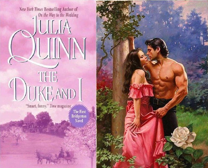 La Chronique des Bridgerton est l'adaptation d'une série de romans à l'eau de rose d'une Américaine née dans les années 70 : Julia Quinn. Vous pourrez trouver les 11 romans de cette saga à succès aux éditions J'ai Lu dans la collection "Aventure et Passions". Nous ne résistons pas à l'envie de vous proposer la couverture américaine du premier tome et sa merveilleuse quatrième de couverture 100% muscles et froufrous.