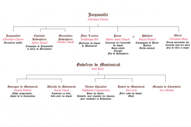 En plus d'interpréter Jacquouille, Christian Clavier jouera son descendant Jacquouillet, époux de Charlotte Robespierre, ou Sylvie Testud. Chez les Montmirail, Franck Dubosc sera l'héritier de Godefroy, marié à Adélaïde, ou Karin Viard, et en relation extra-conjugale avec Flore, ou Frédérique Bel. Marie-Anne Chazel sera également présente au casting. Elle n’interprétera plus Ginette, la SDF compagne de Jacquouille, mais Prune, une sans-culotte à l'époque de la Terreur.