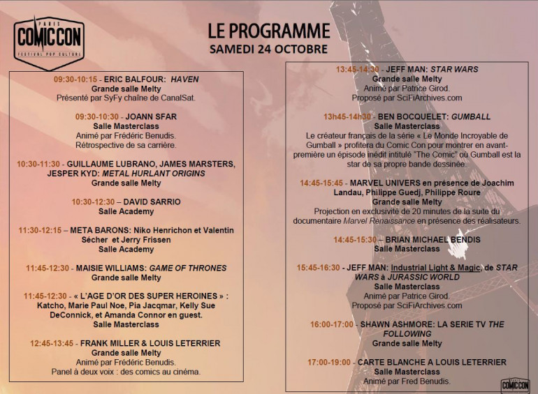La plus grande annonce est celle de la présence de Maisie Williams samedi 24 et dimanche 25 octobre. L'amusante interprète d'Arya Stark dans Game of Thrones viendra à la rencontre de ses fans durant deux jours. Elle animera deux panels (conférence où les fans peuvent poser leurs questions à l'artiste) et participera à une séance de dédicaces. Elle amènera avec elle le véritable trône de fer de la série sur lequel les fans pourront poser.