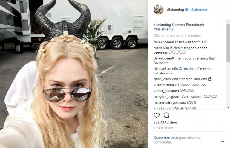 Une des photos des coulisses de "Maléfique 2" partagée par Elle Fanning