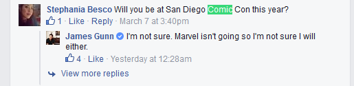La décision de ne pas aller au Comic-Con de San Diego serait surprenante de la part des studios Marvel, qui n'ont pas encore commenté l'information. Elle serait cela dit compréhensible. Probablement très occupé par le prochain opus de la saga Star Wars ainsi que par Batman vs Superman et Justice League, Marvel envisage certainement de faire des annonces lors de sa propre convention qui aura lieu un mois plus tard lors du Disney D23 expo à Anaheim.