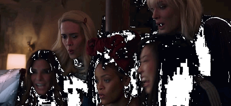 Ocean's 8 n'a pas ce sens du rebondissement. L'allemand impeccable de Sandra Bullock la sort d'un mauvais pas alors qu'elle allait rencontrer la seule personne capable de la reconnaître. Le sens de l'organisation de Sarah Paulson ne connaît pas de faille. Rihanna, en hackeuse, est capable de tout réussir depuis son clavier d'ordinateur. La seule personne qui joue les novices dans le gang est Helena Bonham Carter transformée pour l'occasion en designer. Mais malgré sa maladresse (qui permet quelques sourires), elle finit toujours par se sortir de toutes les situations.