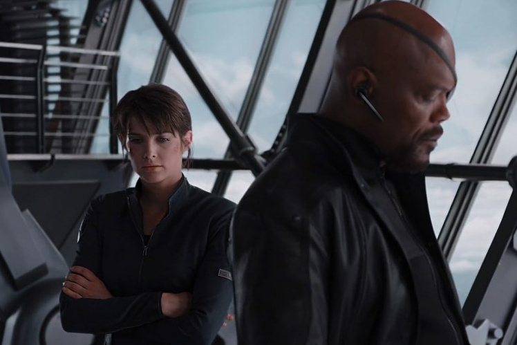 Maria Hill et Nick Furry dans "Avengers", sorti en 2012