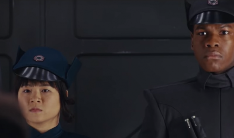 Sorti de son coma, après son combat au sabre laser contre Kylo Ren dans l'épisode 7, Finn fera équipe avec la nouvelle héroïne de la saga. Les deux héros portent les costumes d'officiers du Premier Ordre. Nul doute que c'est à ce moment-là que Finn va retrouver la capitaine Phasma, qu'il avait jetée dans le vide-ordures dans l'épisode 7.