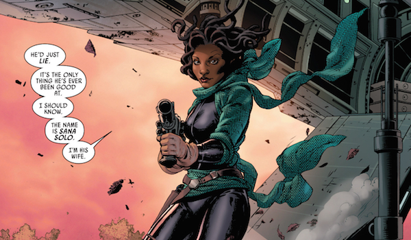 Sana Starros est jeune femme douée pour les cambriolages et les missions périlleuses. Elle apparaît dans les comics Marvel : Star Wars #4, #5, et #6. Les histoires racontées dans ces volumes se déroulent après la fin de l'épisode 4 lorsque l'Étoile Noire est détruite par l'Alliance et que Luke Skywalker, la princesse Leia et Han Solo sont amis, pendant la saga originelle de George Lucas. Si Han Solo a toujours clamé haut et fort qu'il ne s'est jamais marié à la jeune femme, Sana Starros a toujours revendiqué le contraire et n'a pas hésité à parcourir la galaxie pour retrouver son mari.