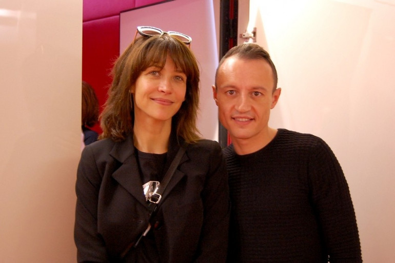 Sophie Marceau et Eric Dussart à la sortie du studio