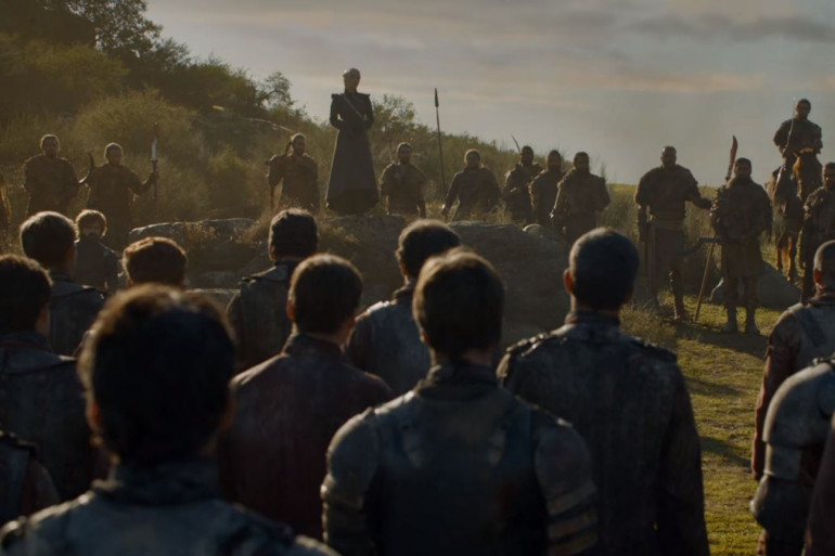 Mais les vivants continuent de s'affronter entre eux. Le début du teaser montre en effet Daenerys juste après la bataille contre les armées Lannister parler aux survivants. Elle veut, comme les Puînés, les Immaculés et les Dothrakis avant eux, qu'ils joignent ses rangs. Elle pose une alternative à leur soumission : les flammes de ses dragons. Tyrion semble inquiet, tout comme Varys. Sans doute préféreraient-ils qu'elle offre plus que de simples menaces pour conquérir les esprits de ces soldats.