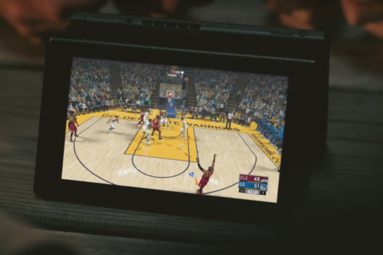 L'écran amovible peut se poser sur une table ou se mettre sa base pour que l'image apparaisse sur l'écran de télévision. Côté jeux, pas de Blu-Ray comme chez les concurrents Sony et Microsoft, mais un retour des cartouches, comme sur la console portable Nintendo 3DS. On remarque dans le trailer les jeux qui seront adaptés pour la Switch : Skyrim, Mario Kart, Splatoon, NBA 2K et The Legend of Zelda : Breath of the Wild.