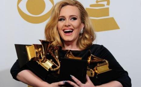 Elle est repartie les bras chargés. Adele présente les trophées remportés le 12 février 2012 lors des 54e Grammy Awards à Los Angeles