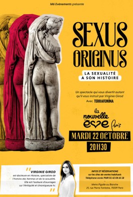 à voir : Conférence théâtralisée, Sexus Originus, le 22 octobre, sur les origines romaines du sexe à aujourd’hui à  La Nouvelle Ève, à Paris - 9ème.