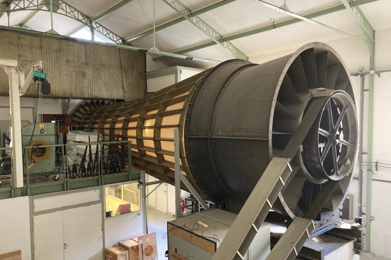 À l'intérieur de la veine d'essai, dans la soufflerie Eiffel à Paris.