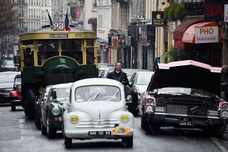 Des voitures défilent dans les rues de Paris le 8 janvier 2017 lors de la 17ème édition de la "Traversée de Paris en Anciennes".