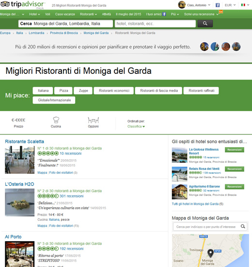 Le journal italien spécialisé dans la restauration et le tourisme Italia a Tavola a inventé un restaurant dans le but de piéger le site participatif américain. Résultat : un mois après avoir publié la fiche de l'établissement et une dizaine de commentaires positifs, le "Ristorante Scaletta" était en tête du classement des restaurants de la ville lombarde de Moniga del Garda, devant "L'Osteria H2O", une table qui cumule plus de 300 avis positifs.