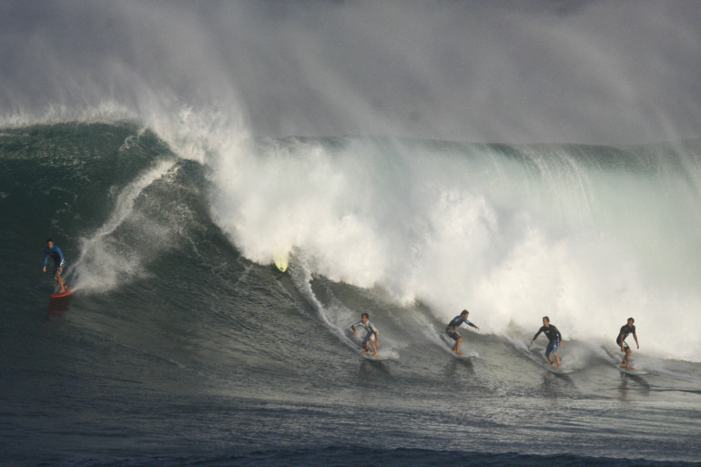 Des surfeurs sur les vagues de Waimea Bay à Hawaï, en 2009.