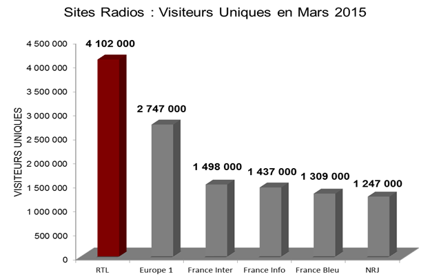 Les audiences des sites de radio du mois de mars 2015