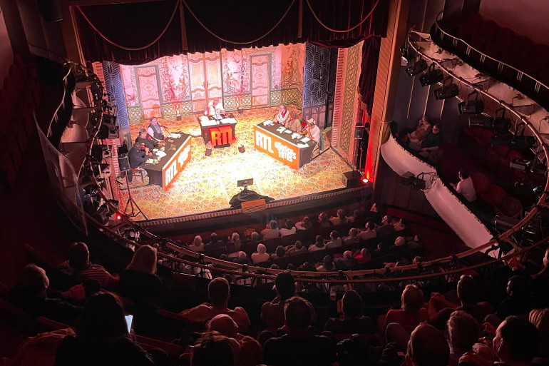 A l'occasion des 100 ans du théâtre de la Michodière, les Grosses Têtes délocalisaient leur émission dans la célèbre salle parisienne. Au milieu des questions d'actualité et des nombreuses bonnes réponses du duo Christophe Barbier - Michel Fau, Max Boublil a apporté un peu de rire et de légèreté.