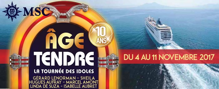 Du 4 au 11 novembre prochain, embarquez avec les artistes de Âge Tendre et Tête de Bois à bord du MSC Splendida au départ de Gênes ! Cette croisière musicale exceptionnelle vous emmènera dans les plus belles escales de la Méditerranée avec notamment des passages par l’Italie, Malte et la Corse.