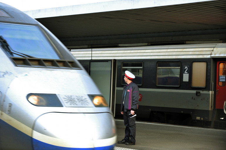 Un agent de la SNCF préparant le départ d'un train (illustration)