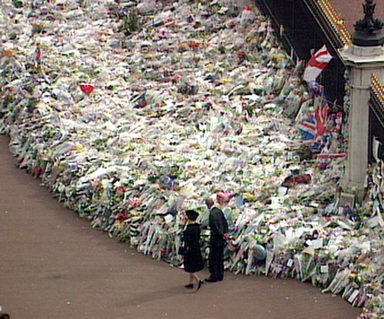 À la mort de Diana, tous les drapeaux de toutes les institutions ont été mis en berne. Toutes sauf une : Buckingham Palace. La Reine résidait alors à Balmoral, en Écosse. La tradition voulait que le drapeau suive la Reine dans ses déplacements. Elizabeth II a refusé de mettre son étendard à Buckingham et de rentrer à Londres, comme le demandait le peuple. L'opinion a perçu cette décision comme un manque de respect et d'affliction de la part de la famille royale Beaucoup ont décrié la "froideur" de la Reine. Sa popularité est descendue au plus bas. 53 % des Britanniques auraient voulu la voir abdiquer sur le champ.