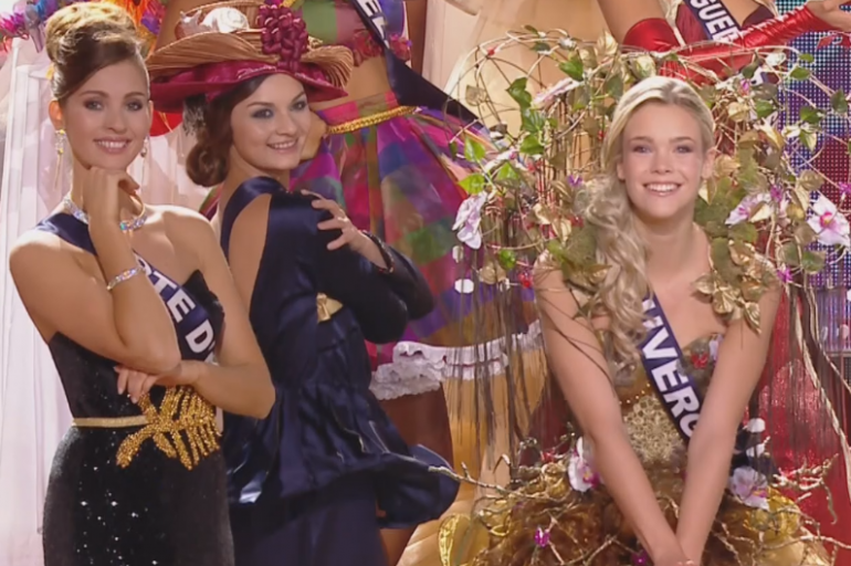 22h12 : les Miss paradent avec les tenues qui représentent leurs régions. Mention spéciale pour la coupe de cheveux de Miss Nouvelle-Calédonie en forme de coquillage.