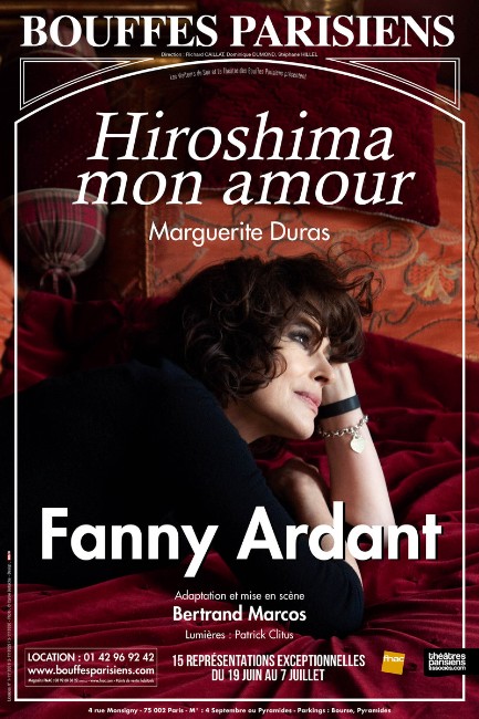 Hiroshima mon amour au Théâtre des Bouffes Parisiens, du mercredi au samedi à 20h. Matinée le dimanche à 15h.