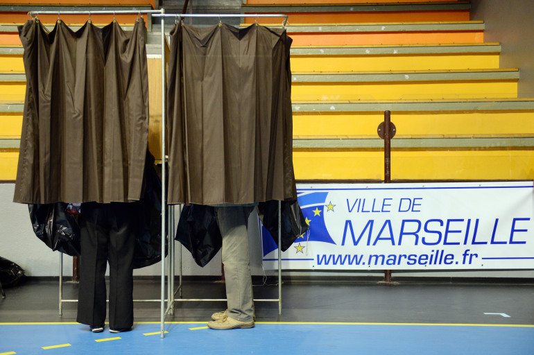 Des électeurs dans les isoloirs d'un bureau de vote de Marseille (archives).