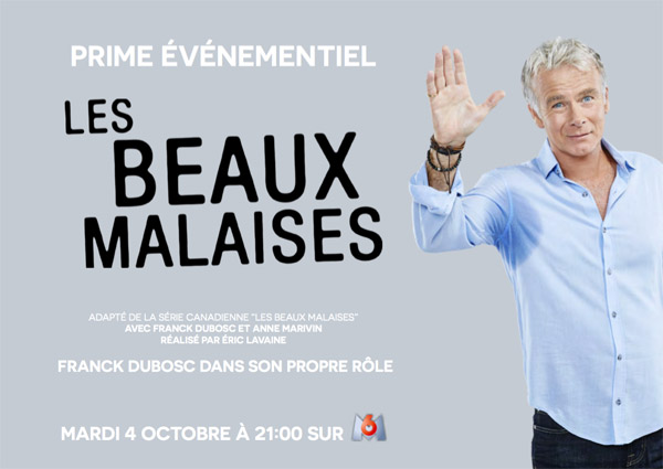 Le 4 octobre prochain, M6 diffusera les premiers épisodes de sa nouvelle série comique intitulée Les beaux malaises avec Franck Dubosc en tête d'affiche. L'acteur, qui a également signé les dialogues, y joue son propre rôle. Avec cette minisérie, le téléspectateur s'immiscera dans la vraie-fausse vie de l'humoriste, une fois les caméras éteintes.