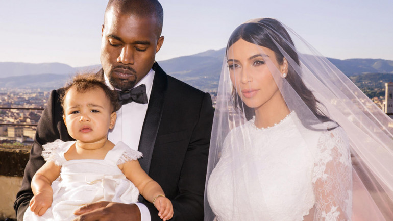 La star de télé-réalité Kim Kardashian et le rappeur Kanye West ont convolé le 24 mai 2014 à Florence (Italie). Lors d'une cérémonie privée, les deux célébrités se sont dit oui, devant leur fille North West ainsi que le reste de leur famille. Il a par ailleurs été demandé aux invités de remettre tout appareil photo et téléphone portable, afin qu'aucun cliché ne filtre de ce moment. Mais comme toute star américaine qui se respecte, le couple a accepté de publier quelques photos officielles dans le magazine People.
