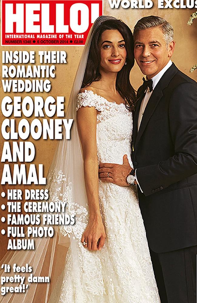 La robe de mariée de Amal est bien visible en Une de "Hello!"