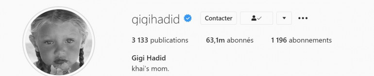 La biographie de Gigi Hadid sur Instagram avec le prénom de sa fille