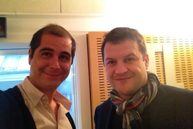 Guillaume Musso pose avec Cyprien Cini, de "RTL"