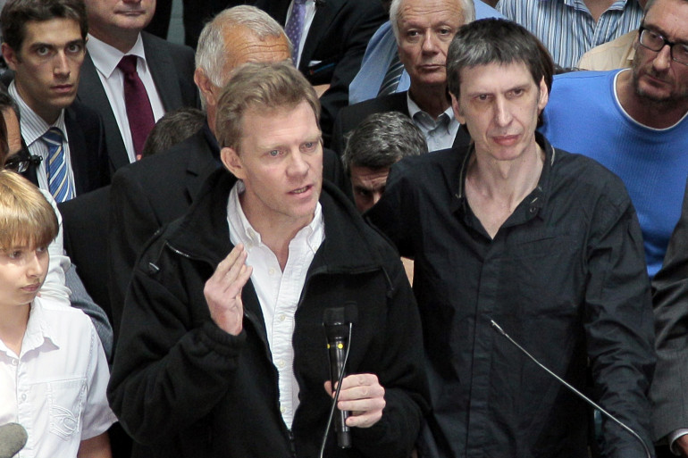 Hervé Ghesquière et Stéphane Taponier, le 30 juin 2011.