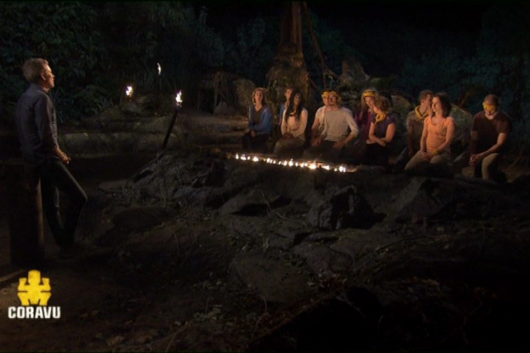 L'équipe jaune lors du conseil de "Koh-Lanta Fidji".