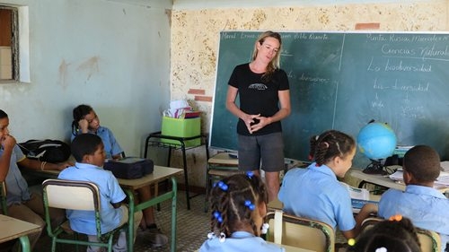 Echange avec les élèves autour de la protection marine dans l'école de Punta Rucia