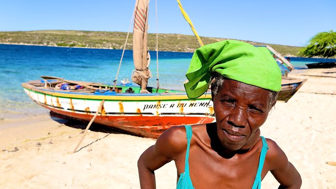 Une habitante de Morne Saint Nicolas prend la pose pour Géraldine Danon
