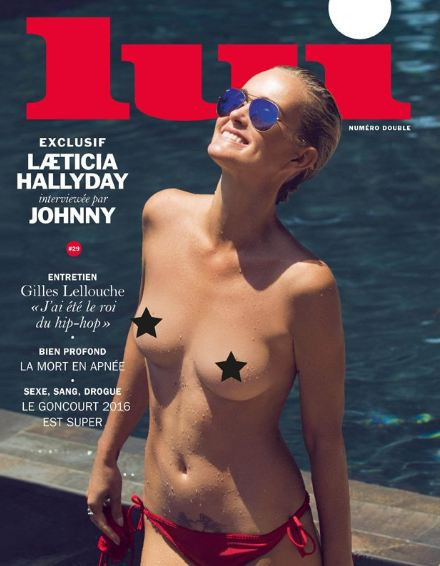 Après Audrey Fleurot, qui avait dévoilé ses formes généreuses fin mai, c’est au tour de la maman de Jade et Joy, 41 ans, de montrer ses atouts sur la couverture de Lui. Laeticia Hallyday a d'ailleurs droit à deux couvertures : une où on la voit de côté, les yeux fermés et les cheveux plaqués en arrière ; l'autre avec des lunettes de soleil, plus souriante que jamais. On remarque également sur sa plastique parfaite deux superbes tatouages.