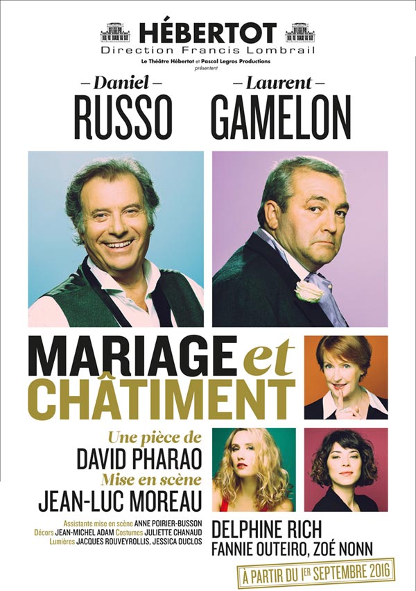 Mariage et châtiment de David Pharao, avec Laurent Gamelon, Daniel Russo, Delphine Rich, Fannie Outeiro et Zoé Nonn, actuellement au Théâtre Hébertot.