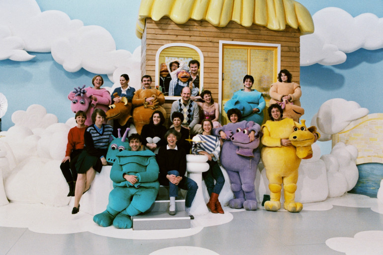 L'équipe de l'émission "Le village dans les nuages" autour de Christophe Izard, en 1984 (image d'illustration).