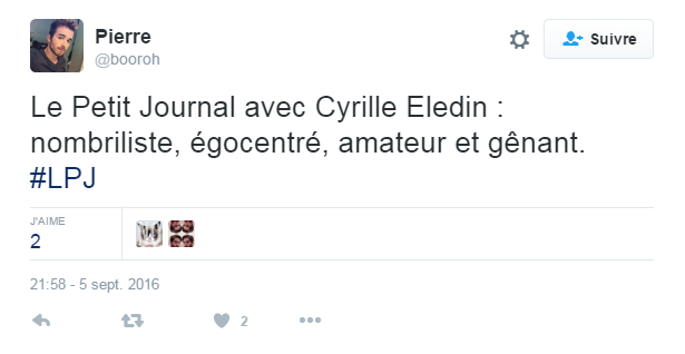 "J'ai touché le fond de la piscine", a chanté Michel Fau dans un sketch du nouveau Petit Journal. C'est un peu le cas de Cyrille Eldin qui a repris ce lundi soir les rennes de l'émission présentée par Yann Barthès jusqu'à cette saison. L'ancien chroniqueur et journaliste politique qui officiait jusqu'alors pour Maïtena Biraben n'a pas plu aux internautes. Pas du tout. Les tweets de déception se sont accumulés à une vitesse impressionnante sur le réseau social.