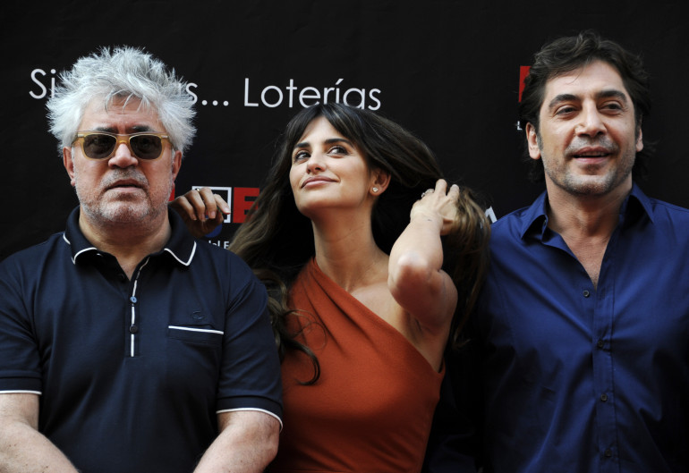 Pedro Almodovar, Penelope Cruz et Javier Bardem à Madrid, le 27 juin 2011
