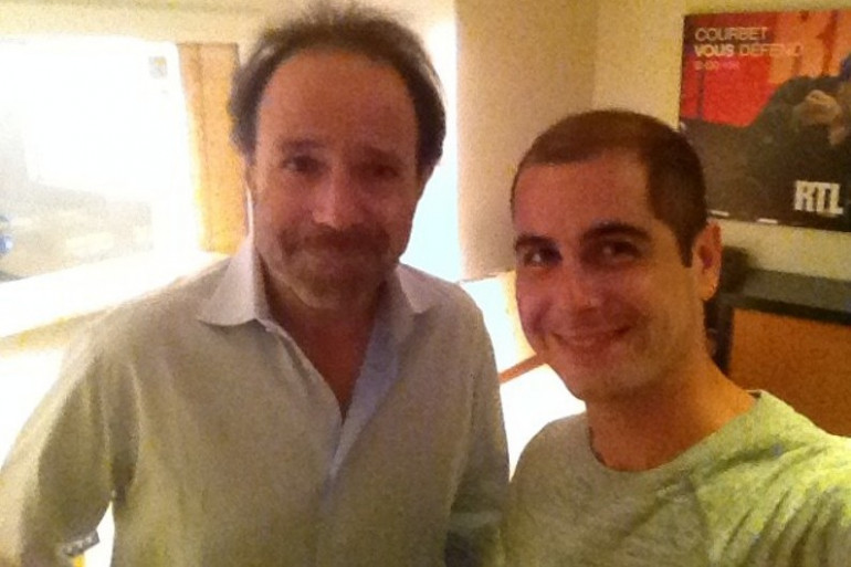 Marc Lévy aux côtés du journaliste de RTL Cyprien Cini