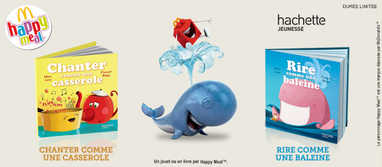 Hachette Jeunesse qui a conclu le contrat avec l'enseigne américaine a fait appel au romancier qui caracole en tête des ventes des librairies françaises pour une série de livres consacrés aux expressions de la langue française. Intitulés Chanter comme une casserole, ou Rire comme une baleine, les courtes histoires sont proposées à la place du jouet qui accompagne habituellement le menu et sont illustrées par le dessinateur Florent Bégu.