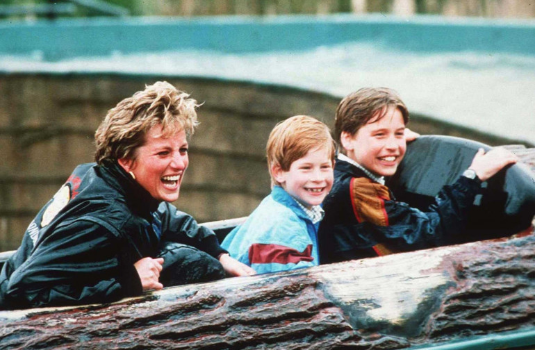 Diana, Harry et Williamau parc d'attractions Thorpe en 1993