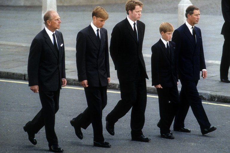 Le 6 septembre 1997, le cercueil de Diana est suivi par ses fils Harry et William avant les obsèques