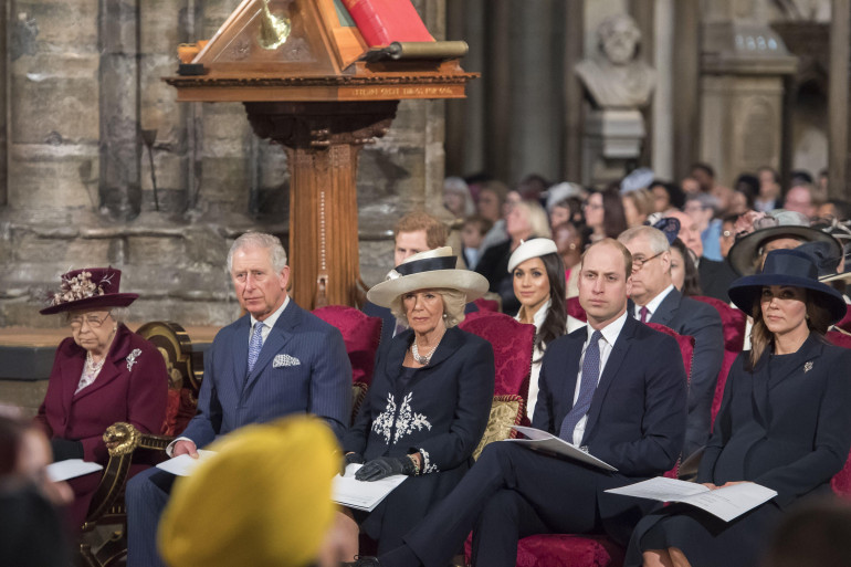 Première révérence publique pour Meghan Markle face à Elizabeth II et son époux le duc d'Édimbourg