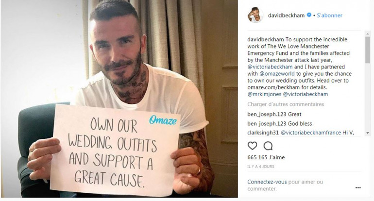 Naturellement, les Beckham ne se séparent pas de leurs précieux atours pour faire creuser une piscine ou arrondir leur budget vacances. Cette vente servira une bonne cause, l'ONG We Love Manchester qui soutient les familles des victimes de l'attentat du 22 mai 2017 lors d'un concert de la chanteuse Ariana Grande.