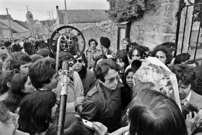 Michel Drucker aux funérailles de Claude François, à Dannemois, le 15 mars 1978.